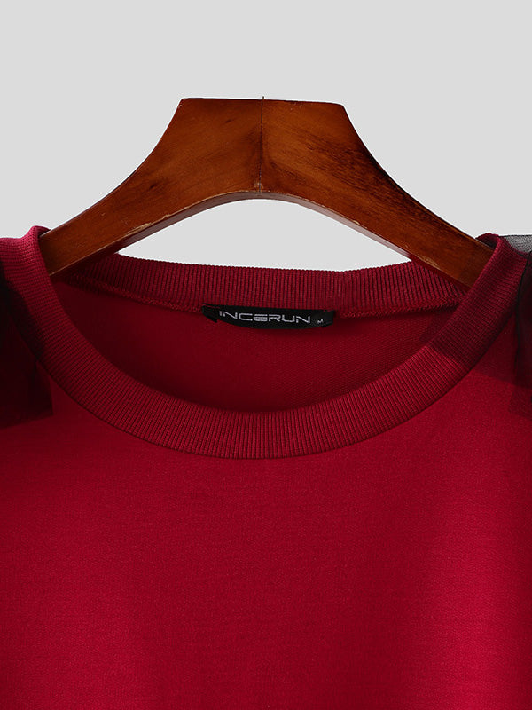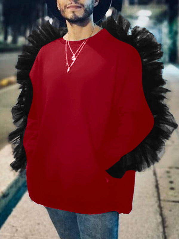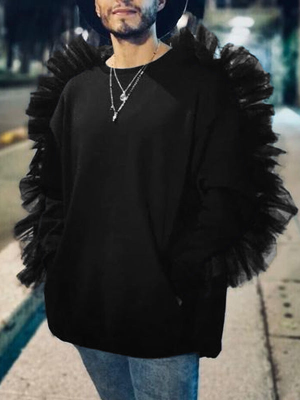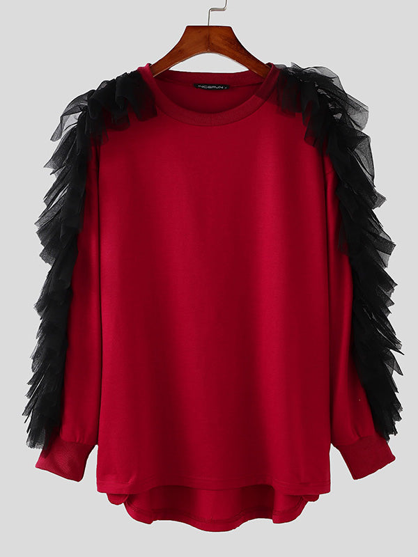 Mens Lace Floral Patchwork Long-Sleeve T-Shirt SKUK93638