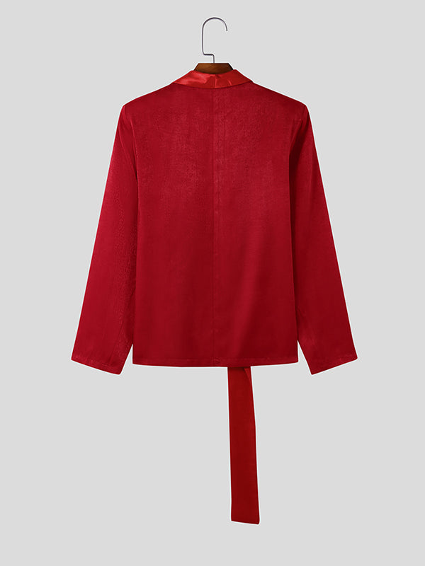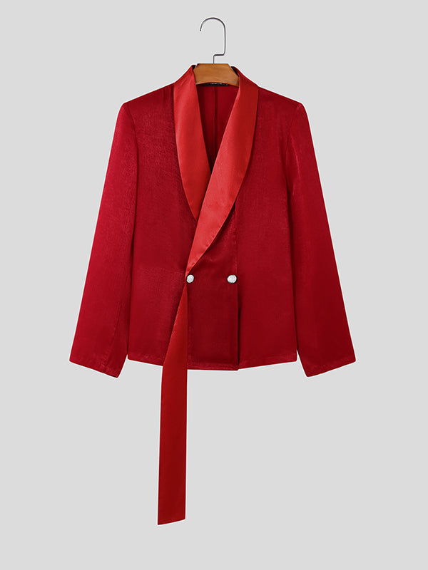 Mens Satin Patchwork Long Sleeve Blazer SKUK90357
