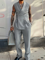 Mens Double-Breasted Sleeveless Jumpsuit SKUK76966