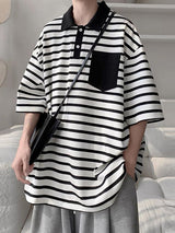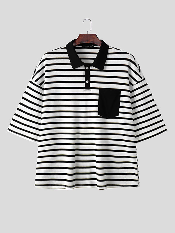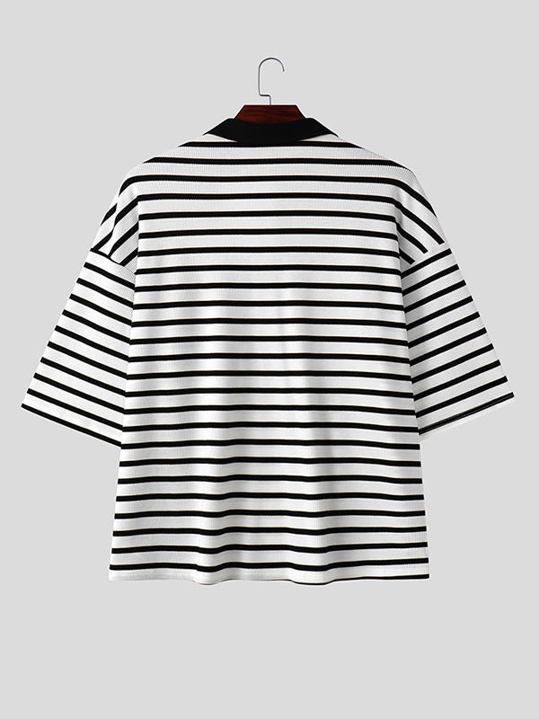 Mens Horizontal Striped Color-Block Short Sleeve Shirt SKUK99034