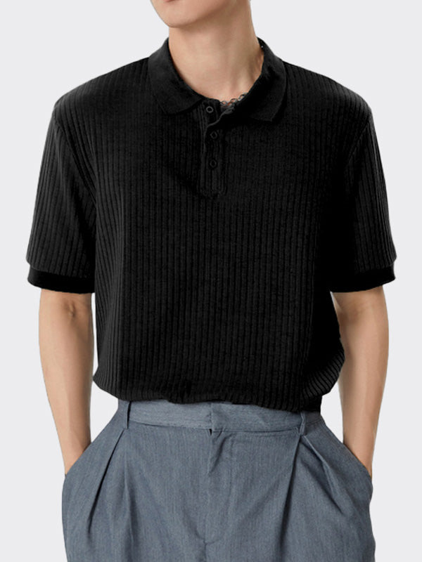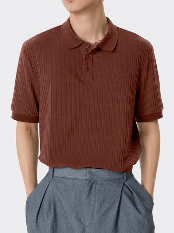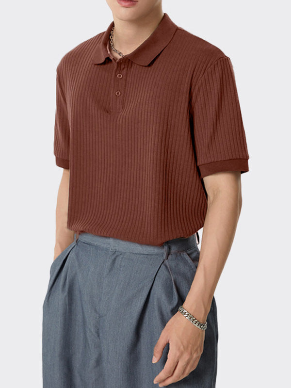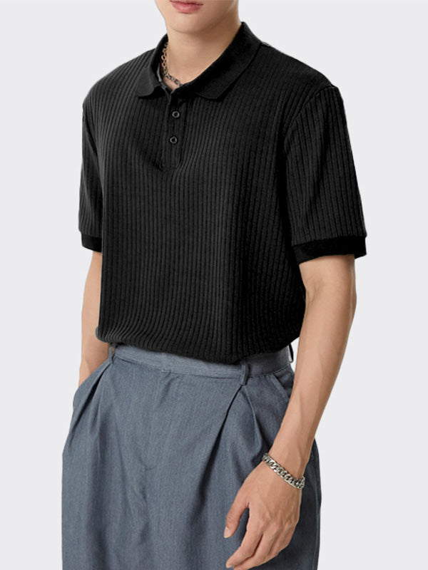 Mens Knitted Rib Pullover Golf Polo Shirt SKUJ37706