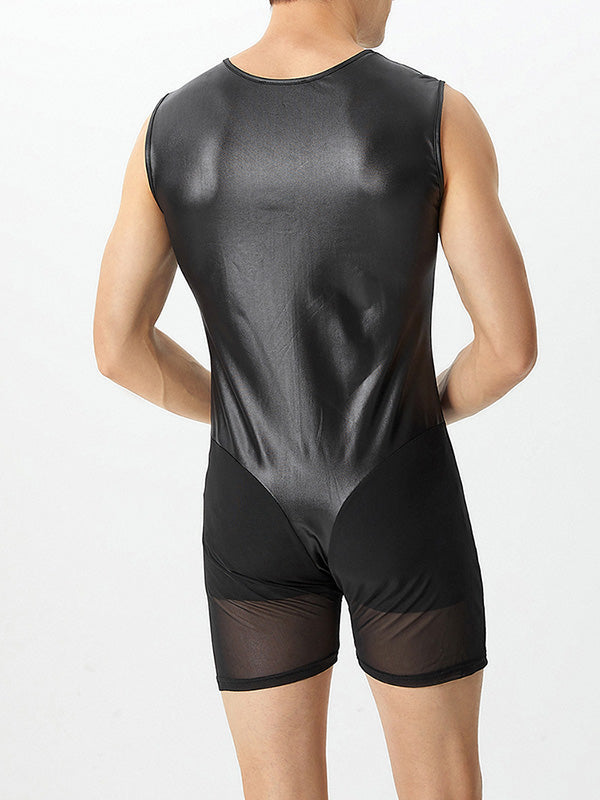 Mens PU Leather Mesh Patchwork Bodysuit SKUJ91189