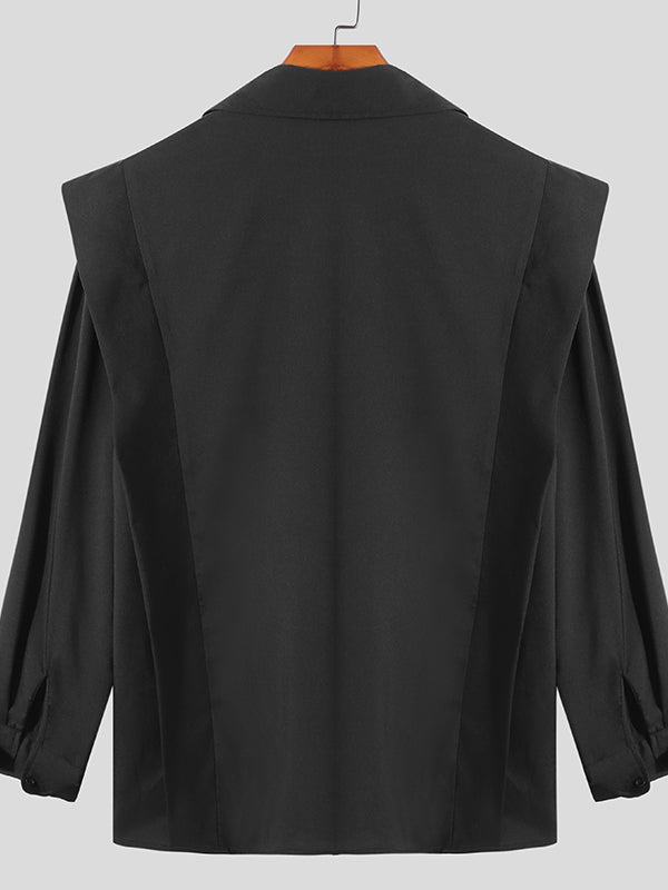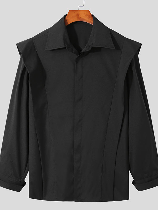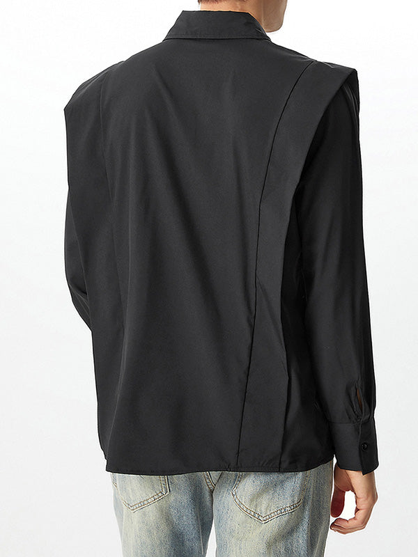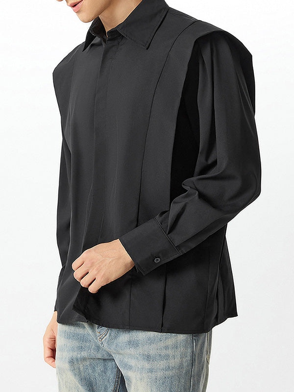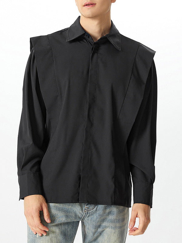 Mens Shoulder Ruffled Concealed Placket Casual Shirts SKUI73783
