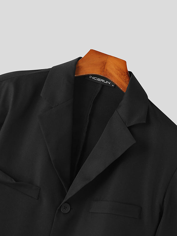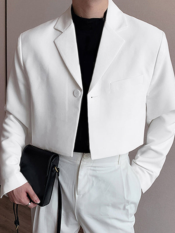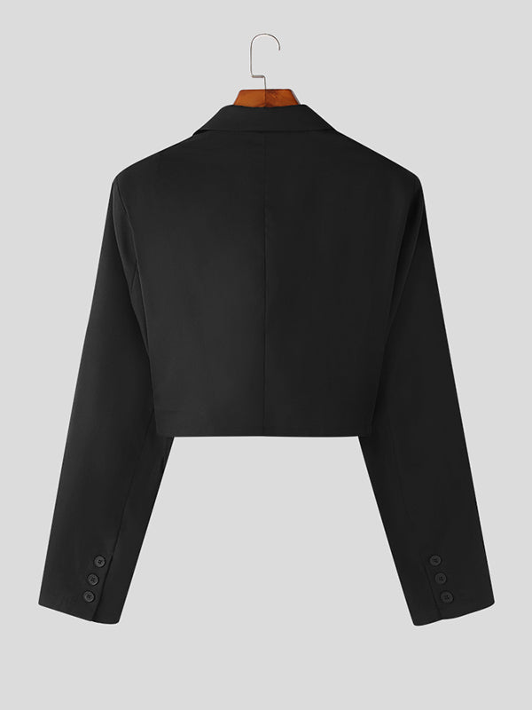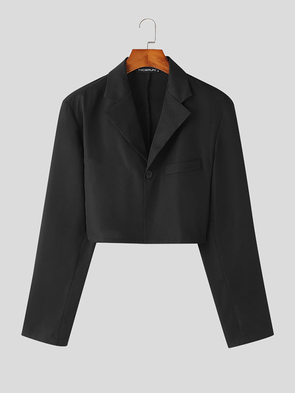 Mens Solid Lapel Casual Blazer Crop Top SKUK27769