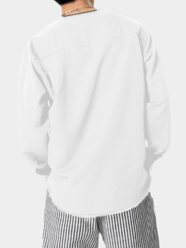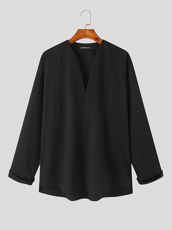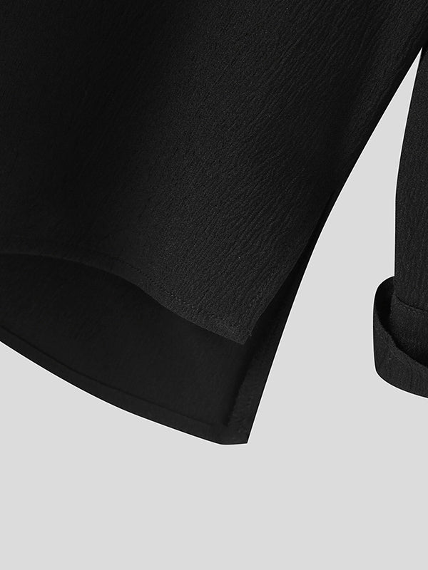 Mens Solid Texture Notched Neck Shirt SKUK11249