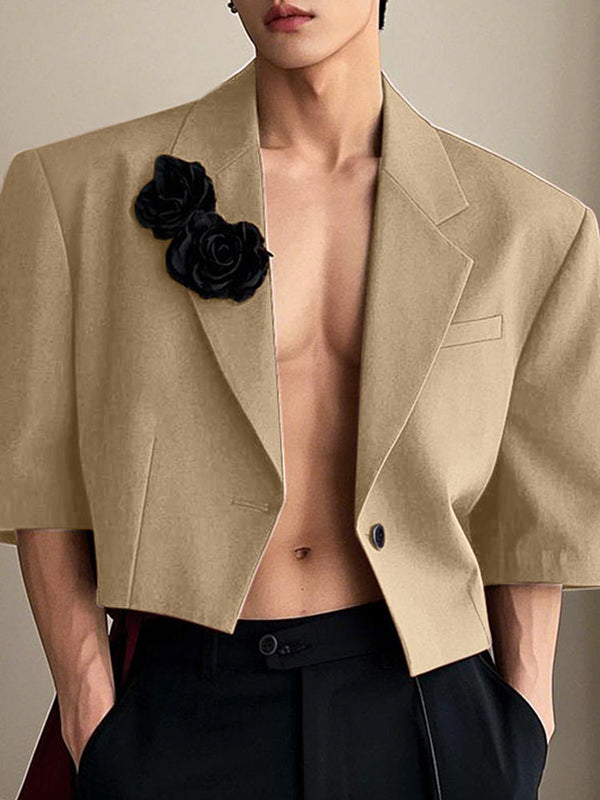 Mens 3D Floral Patchwork Cropped Short Sleeve Blazer SKUL01251