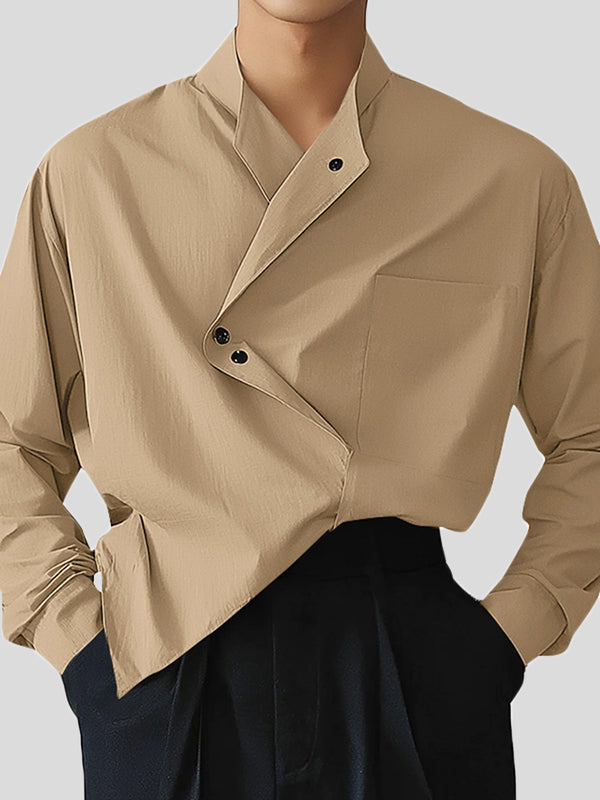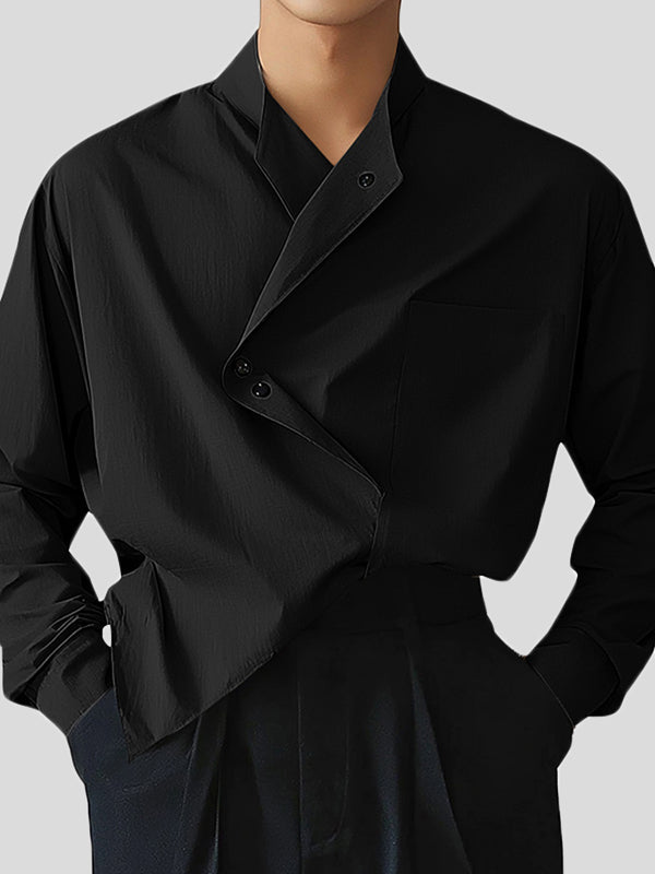 Mens Asymmetric Cross Design Long Sleeve Shirt SKUL07358