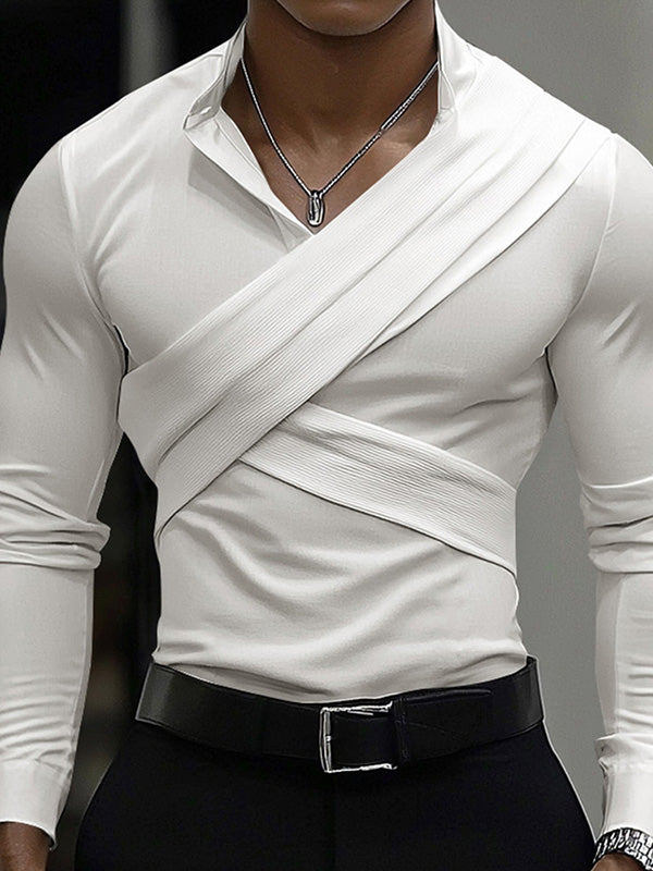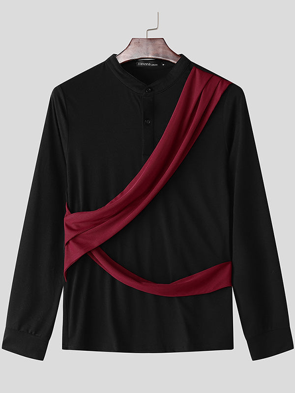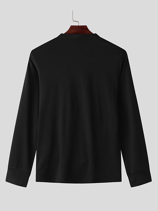Mens Color-Block Patchwork Long-Sleeve T-Shirt SKUK85553