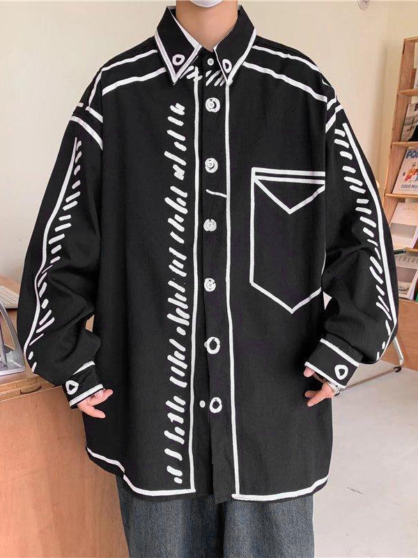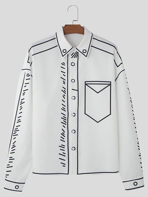 Mens Comic Style Print Long Sleeve Shirt SKUK78353