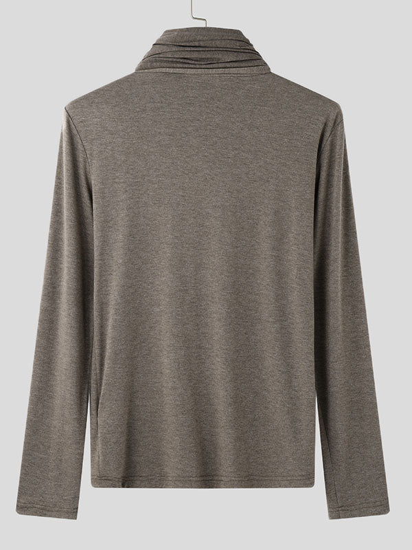 Mens Draped Neck Ruffled Long Sleeve T-Shirt SKUK83713
