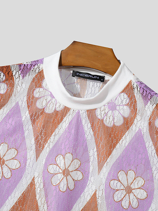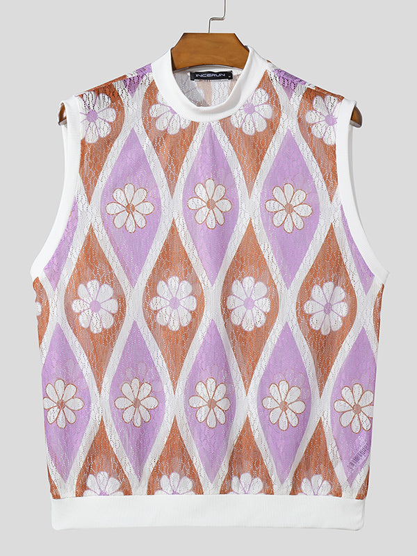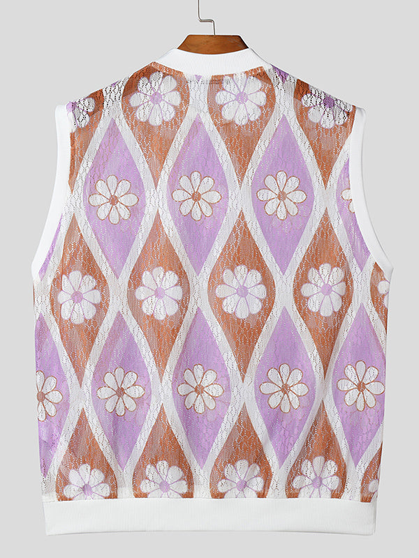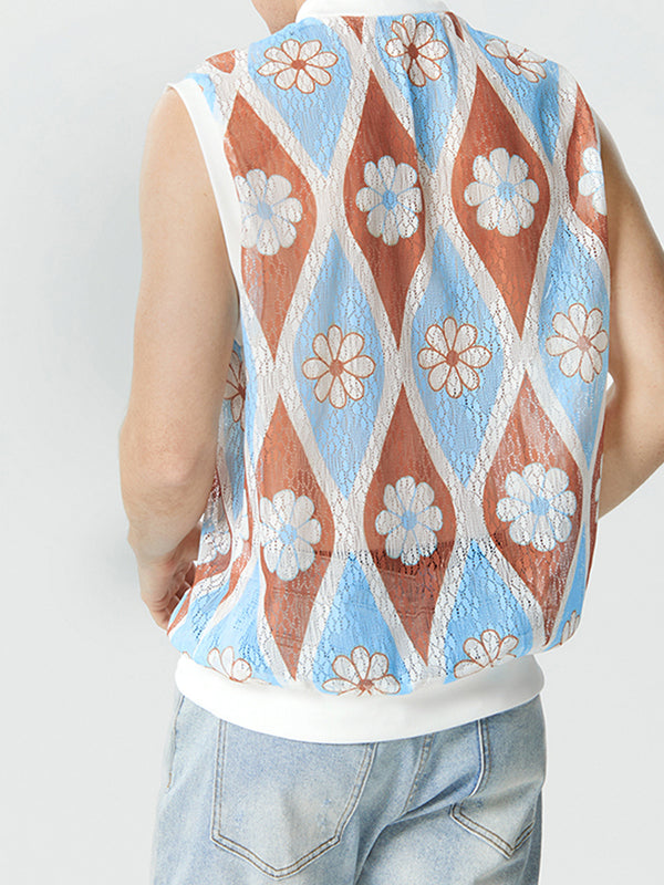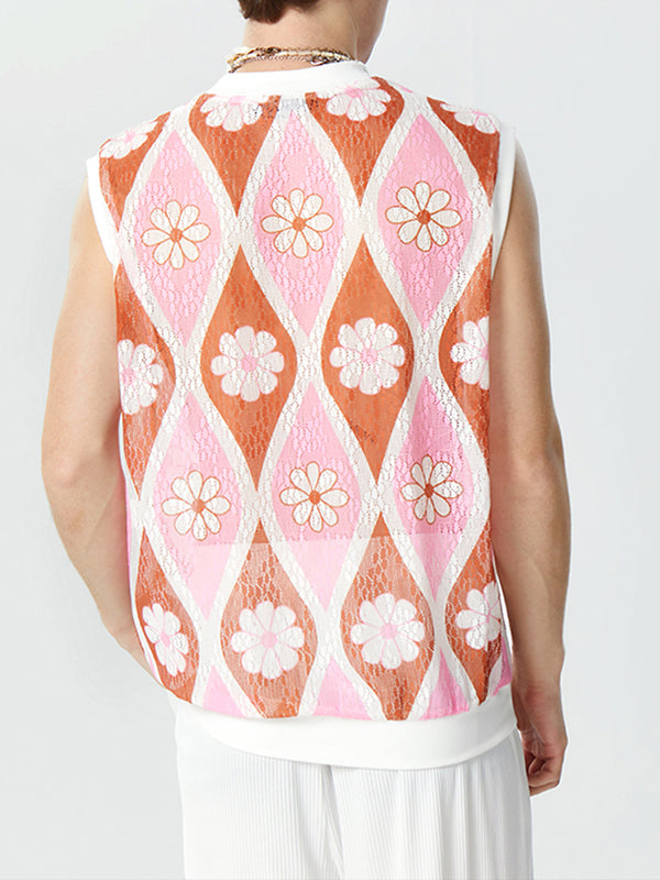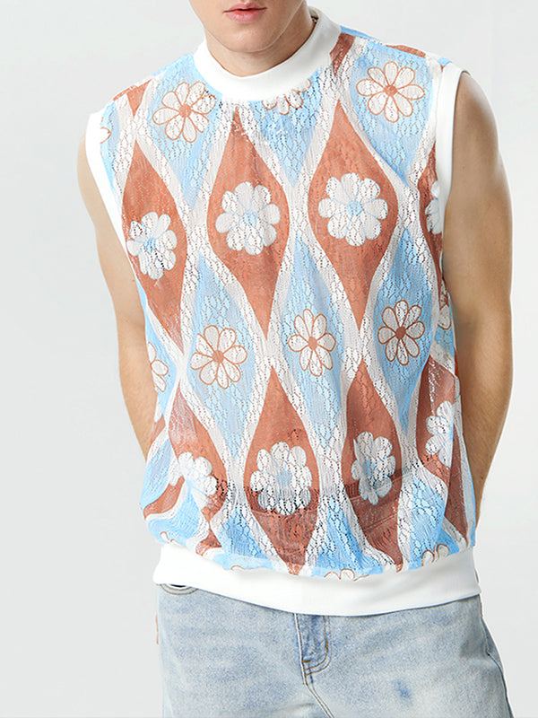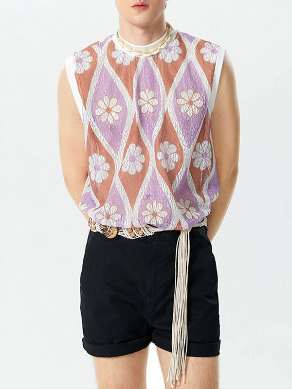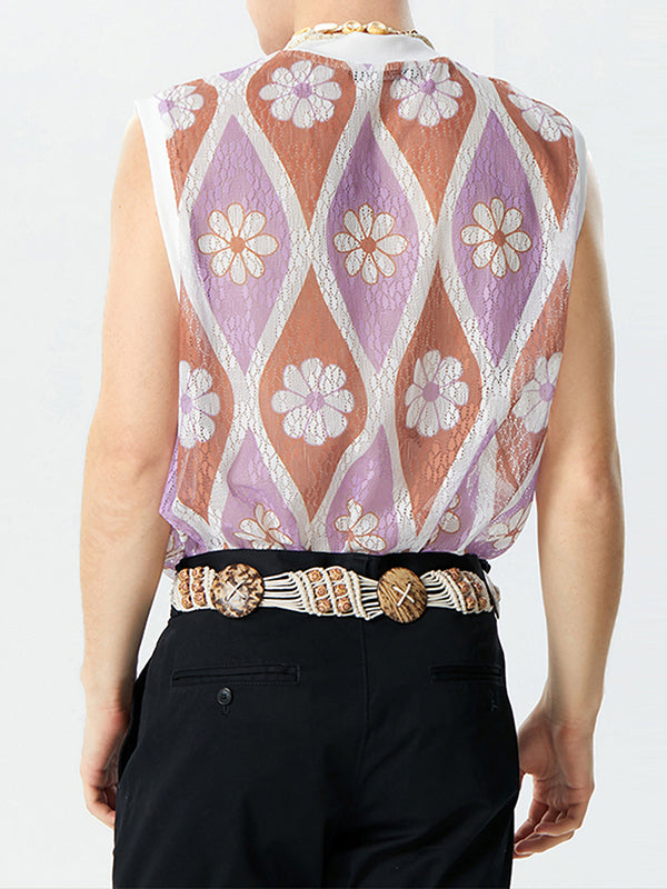 Mens Floral Lace Patchwork Sleeveless Vest SKUK39940
