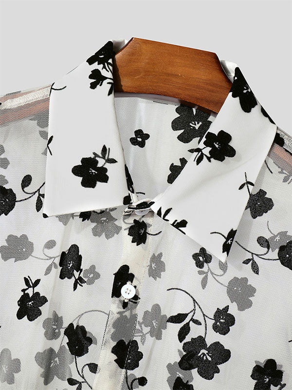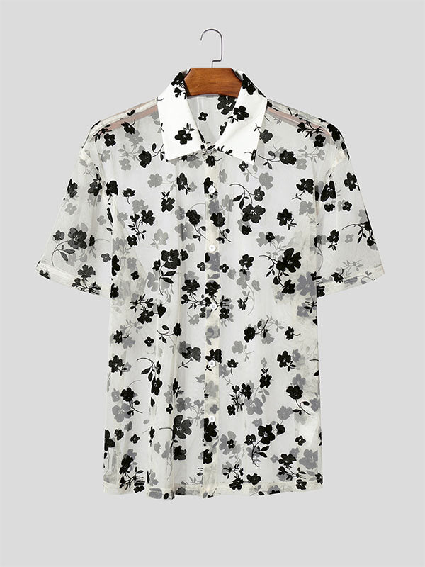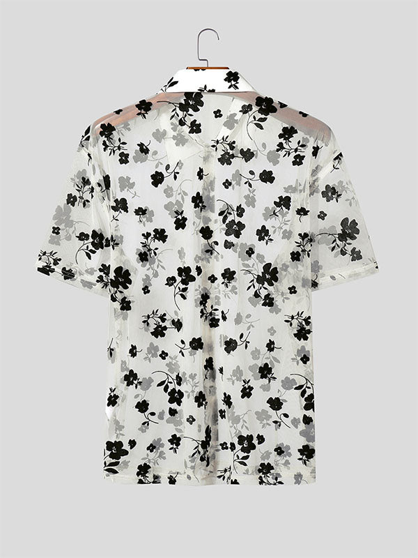 Mens Floral Mesh Sheer Short Sleeve Shirt SKUL03656
