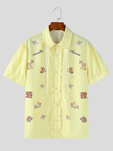 Mens Floral Print Bow Tie Short-Sleeve Shirt SKUK99748