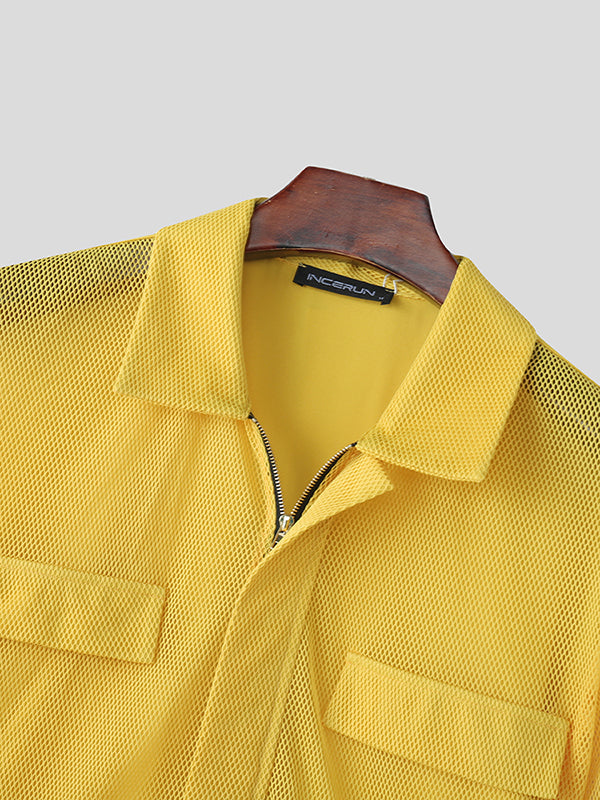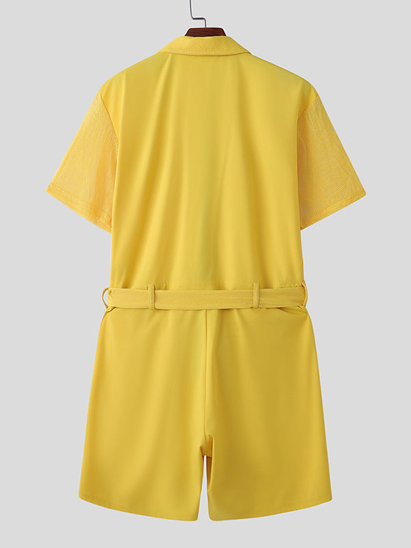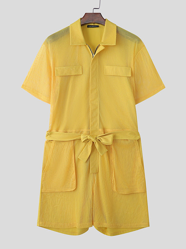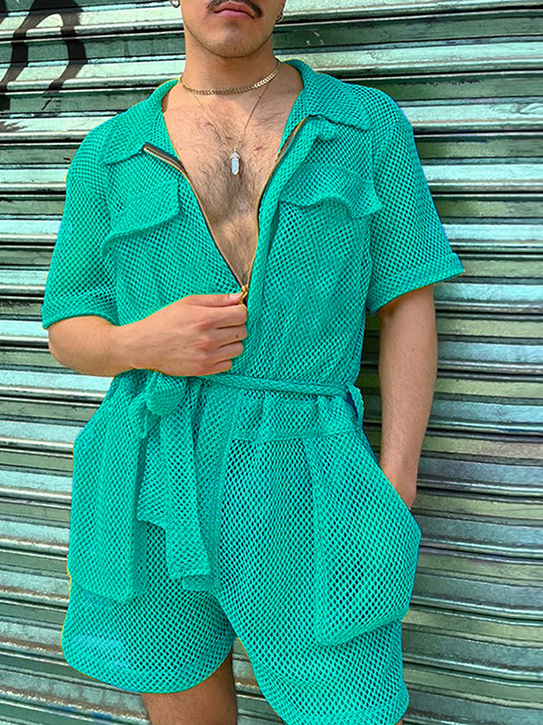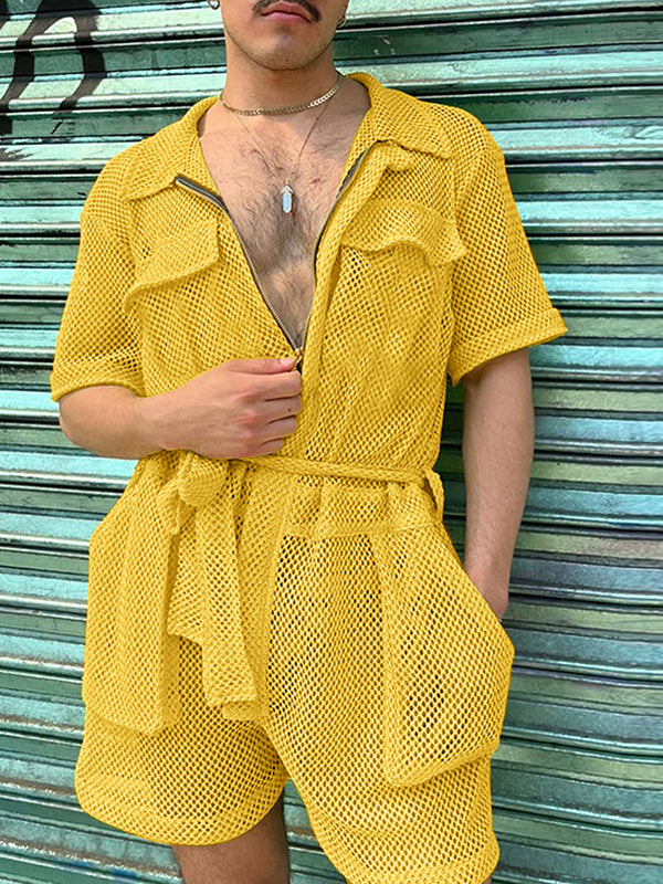 Mens Hollow Mesh Short-Sleeve Jumpsuit SKUL00957