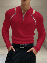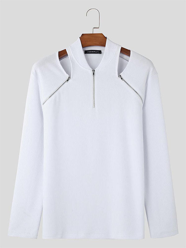 Mens Hollow Zipper Long Sleeve T-Shirt SKUK96900