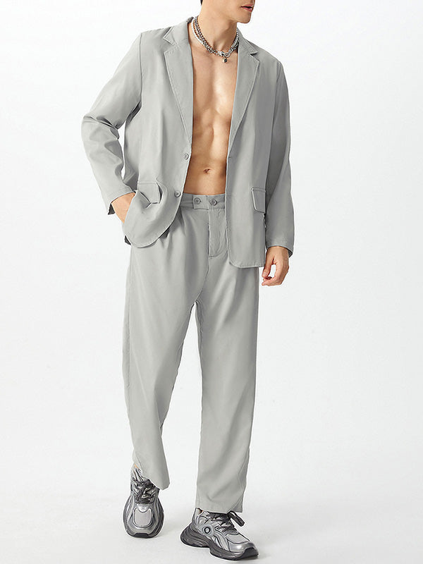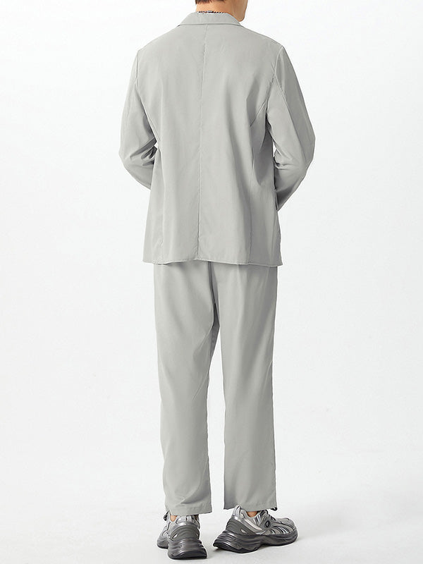 Mens Solid Long Sleeve Two Pieces Outfits SKUJ90773