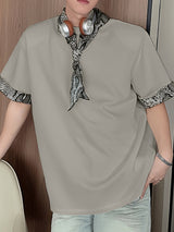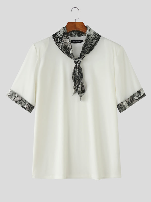 Mens Leopard Patchwork Crew Neck Short Sleeve T-Shirt SKUL13004