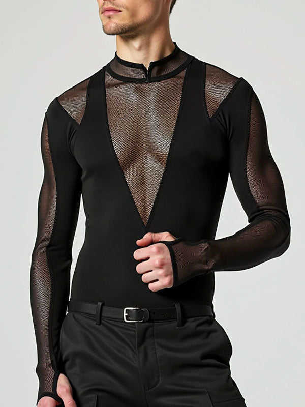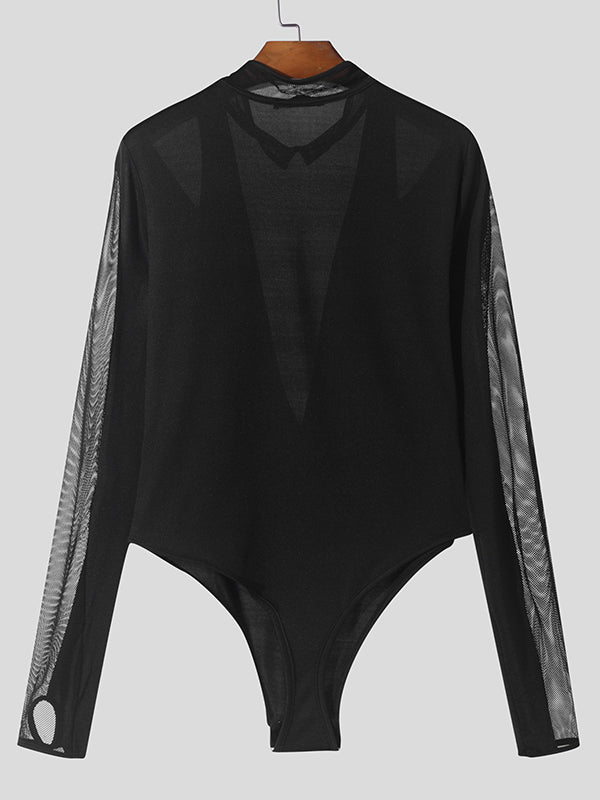 Mens Mesh Patchwork Design Long Sleeve Bodysuit SKUK83103