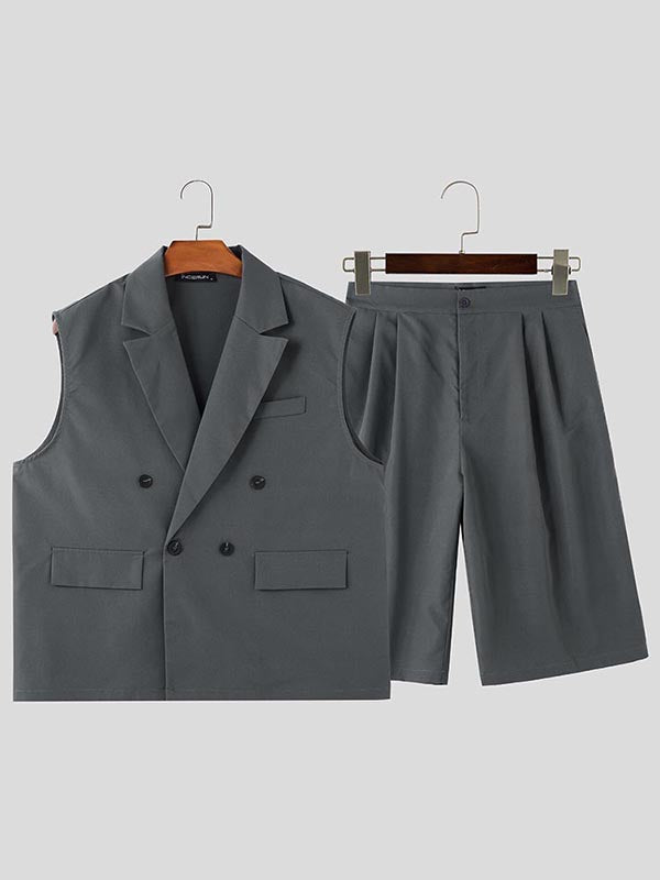 Mens Minimalist Double-Breasted Two Pieces Outfit SKUK98022
