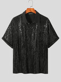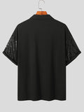 Mens Sequin Sparkle Glitter Patchwork Polo Shirt SKUJ37726