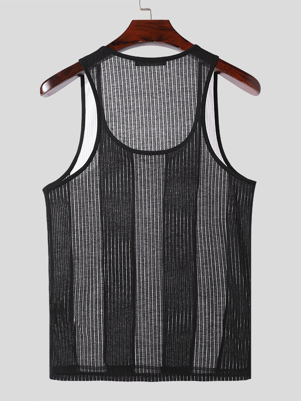 Mens Sexy Striped U-Neck Sleeveless Tank SKUK66893