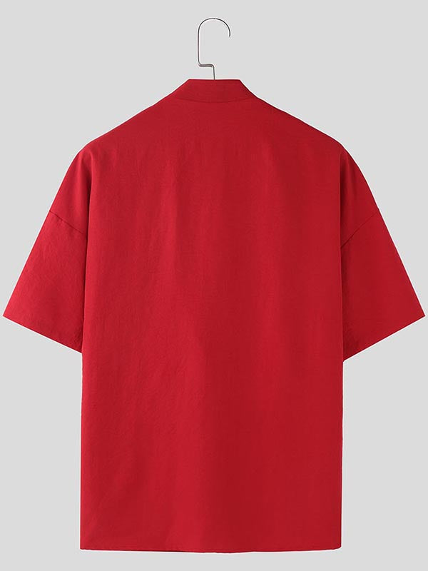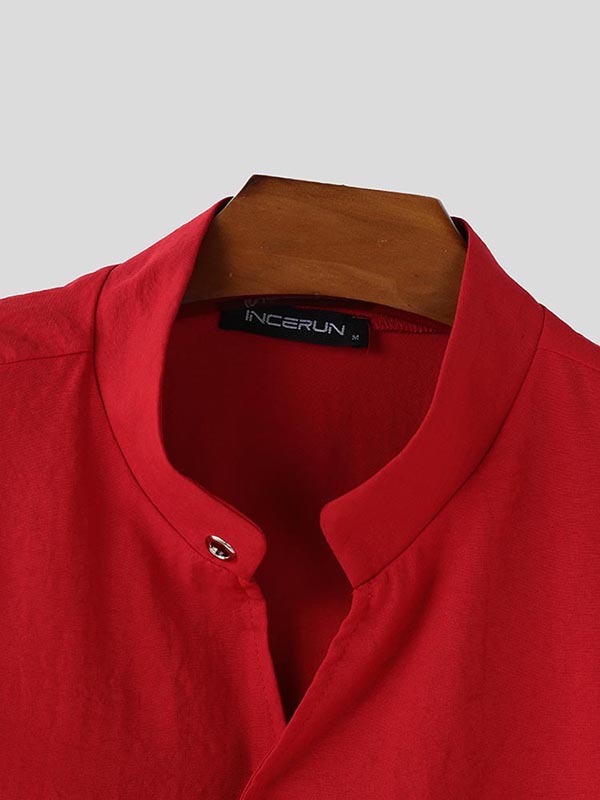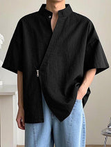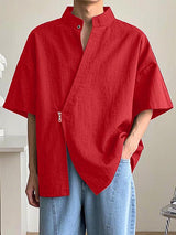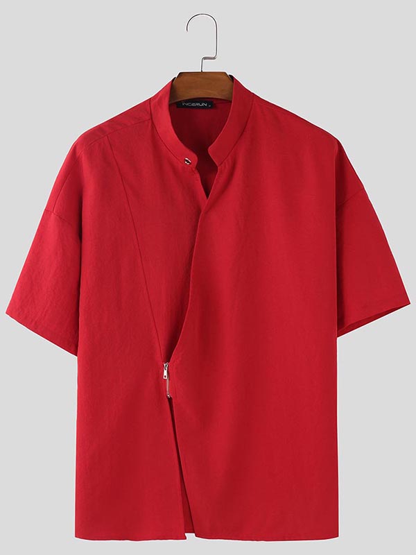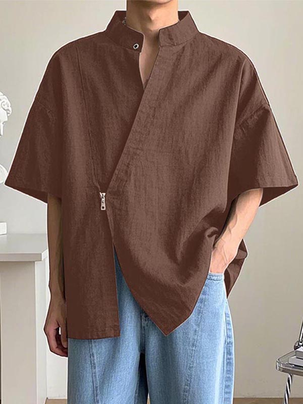 Mens Simple Solid Color Zipper Short Sleeve Shirt SKUK98835