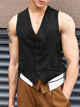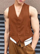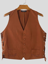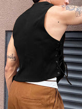 Mens Solid Color Drawstring Design Casual Waistcoat SKUK97538