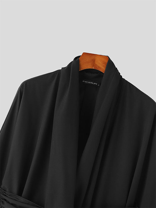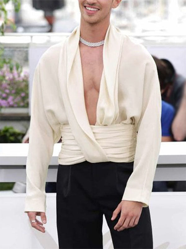 Mens Solid Irregular Design Long Sleeve Shirt SKUK44480