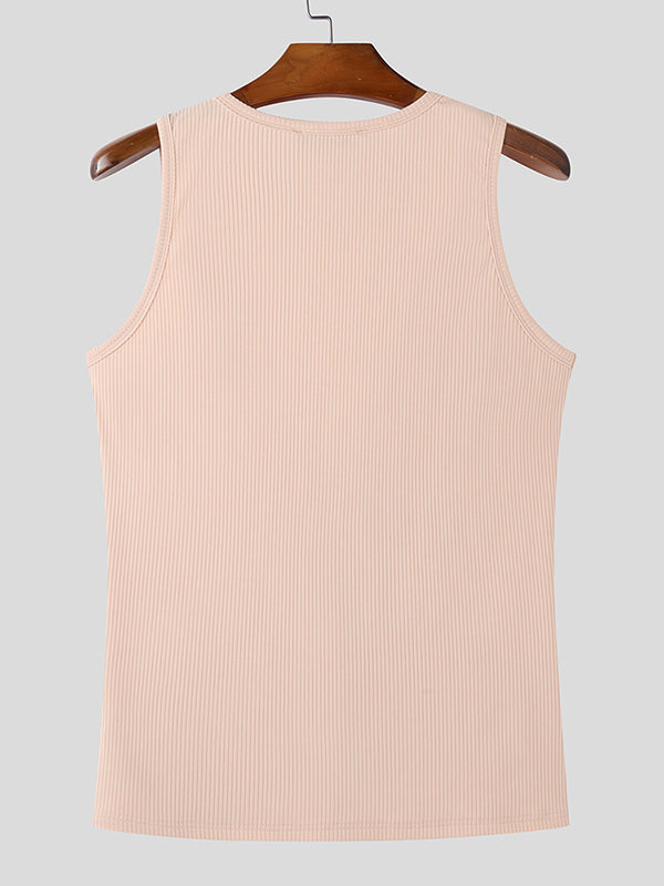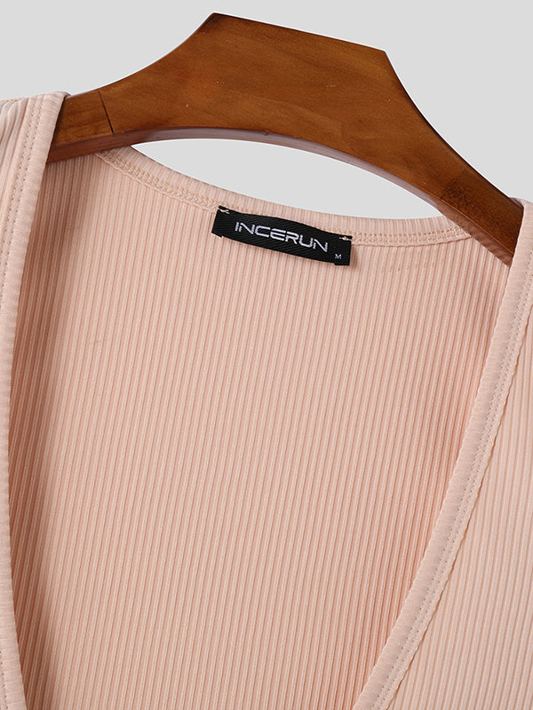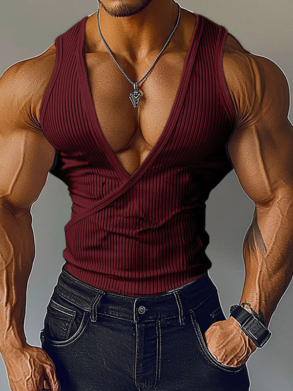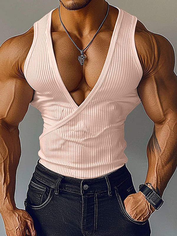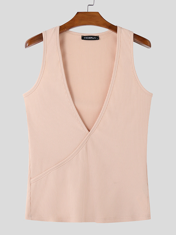 Mens Solid Textured Deep V-Neck Tank SKUL01367