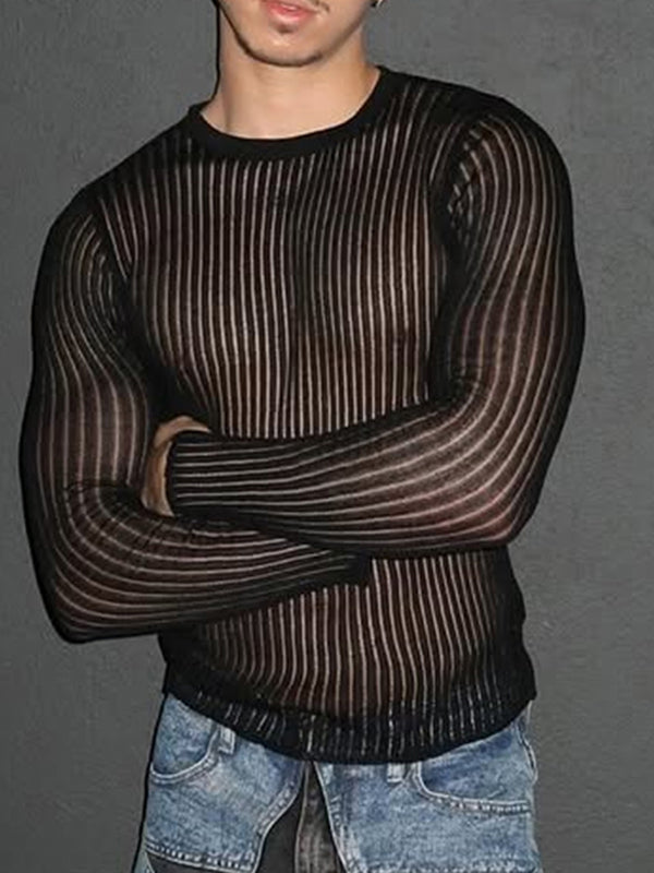 Mens Striped Sheer Long Sleeve T-Shirt SKUK99918