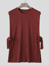 Mens Textured Split Hem Tie Sleeveless Tank SKUL06397