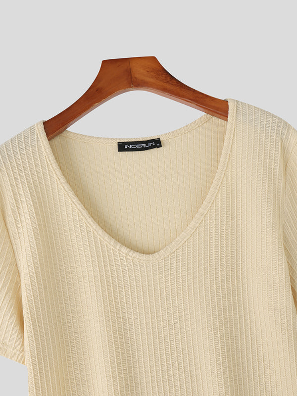 Mens Textured V-Neck Short Sleeve T-Shirt SKUL13340